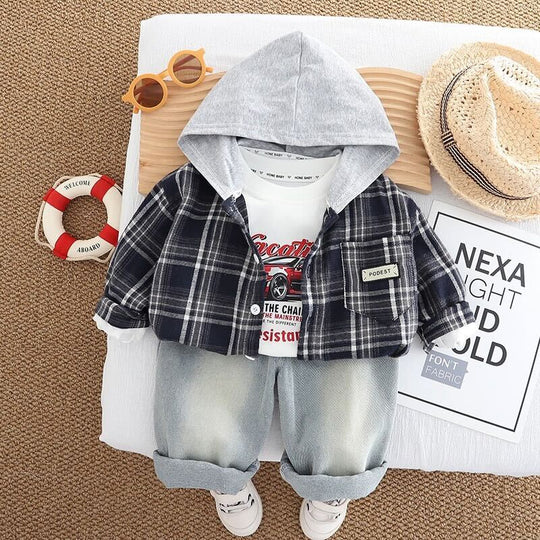 New Hooded checkered three piece piece set