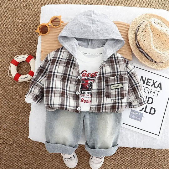 New Hooded checkered three piece piece set
